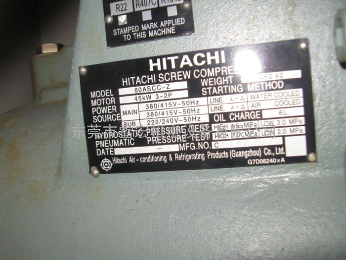 長期供應日立60ASCC-Z螺桿壓縮機,價格合理,品質(zhì)保證.原產(chǎn)地:日本,壓縮機型號:60ASCC-Z,適用冷媒:R22/功率:45KW;3相 2P 壓縮機總重:460KG;電壓:MAIN380/415V-50HZ /LINE:星-三角/WATER COOLED/OIL CHARTE:6L /HIGH:4.5MPA//LOW:3.0MPA